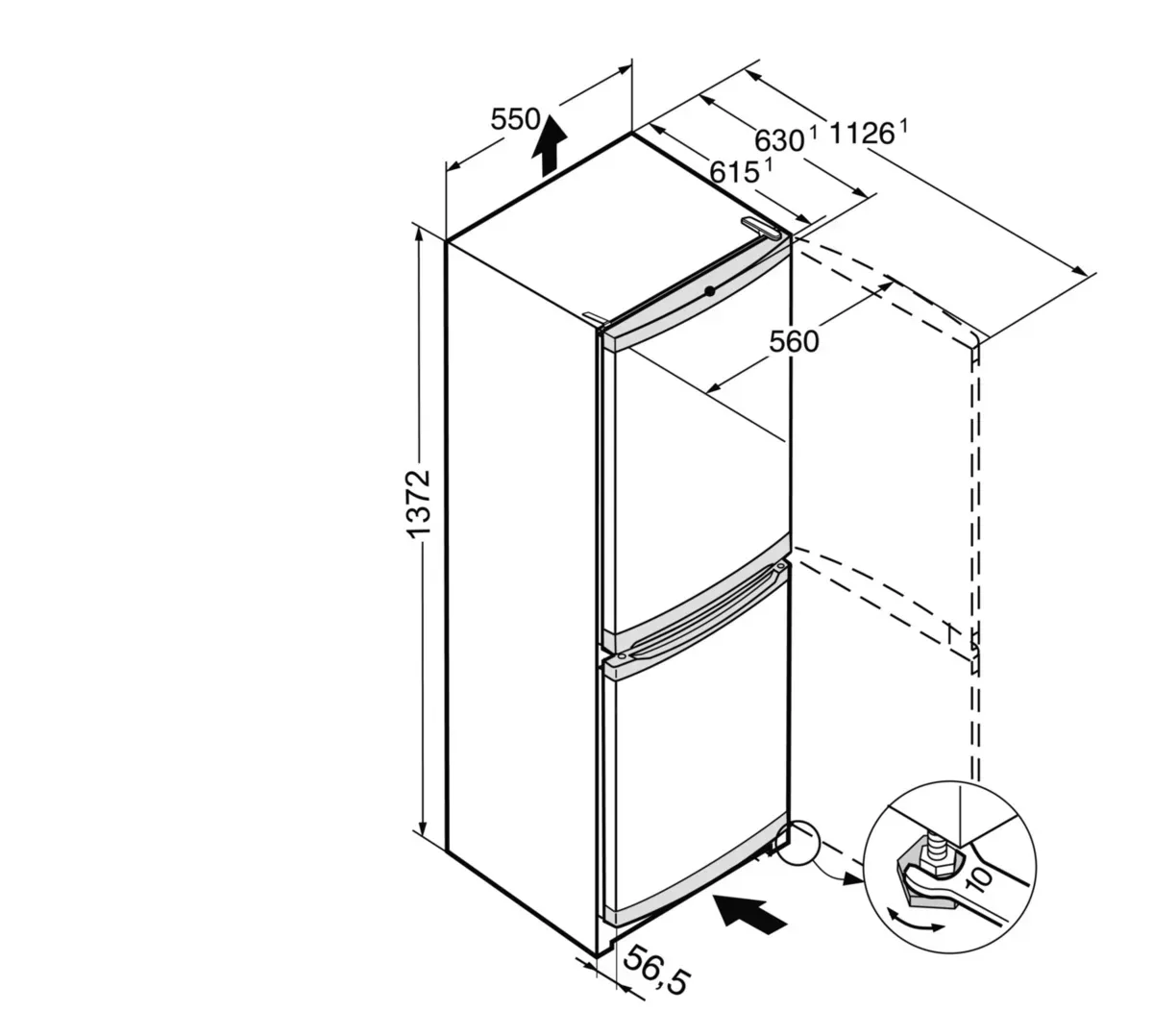 Vnější rozměry: výška / šířka / hloubka 137,2 / 55 / 63 cm