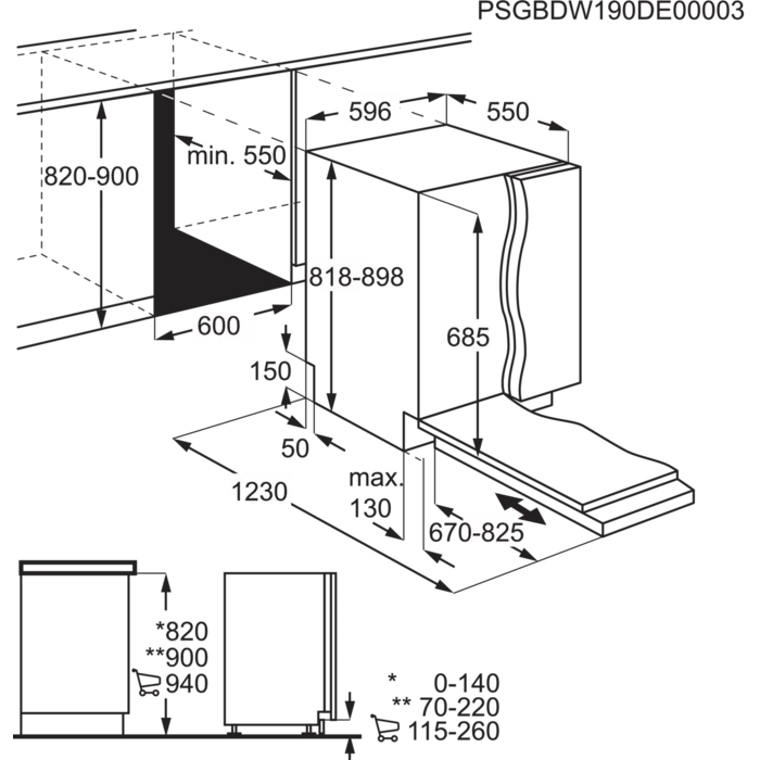 Prostor pro instalaci VxŠxH (mm) 820-900x600x570