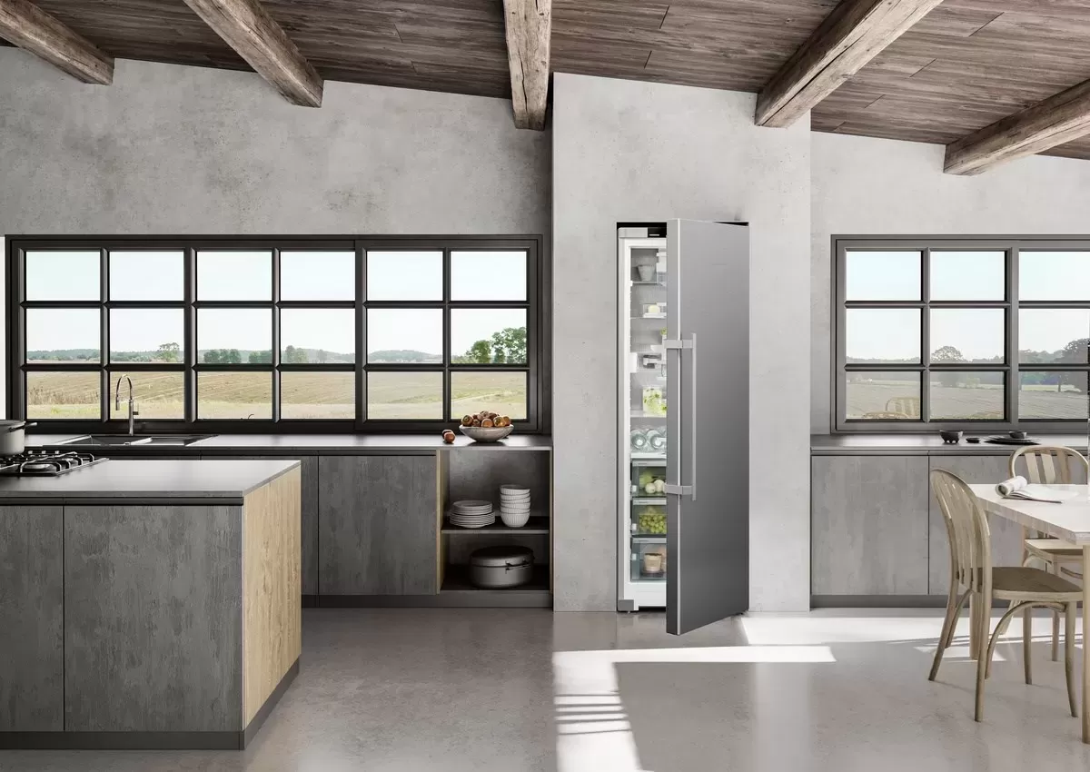 Doveďte puristický design své kuchyně k dokonalosti: Naše chladničky přesně zapadnou do výklenku o hloubce 60 cm. Pouze dveře vyčnívají v definované vzdálenosti a umožňují optimální přístup k zapuštěnému úchytu nebo pákové rukojeti. Vaše kuchyň tak bude trvale upoutávat pozornost – se spotřebičem Liebherr jako ústředním designovým prvkem.
