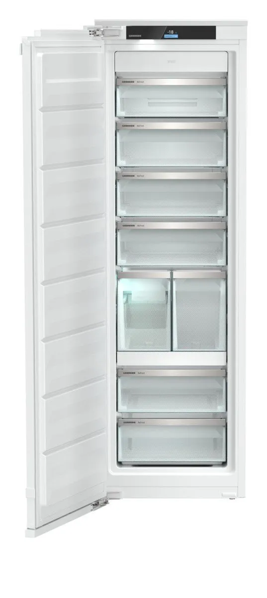 Když ve své mrazničce Liebherr otevřete zásuvky, potěší vás nejen pohled na své potraviny, ale také atraktivní osvětlení: To zajišťují výkonné ekologické LED s dlouhou životností. Osvětlení ještě více usnadňuje přehlednost obsahu a současně je nevšedním designovým prvkem.