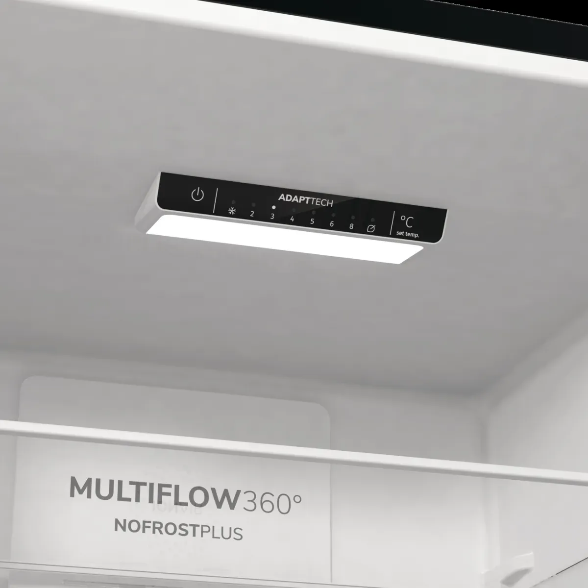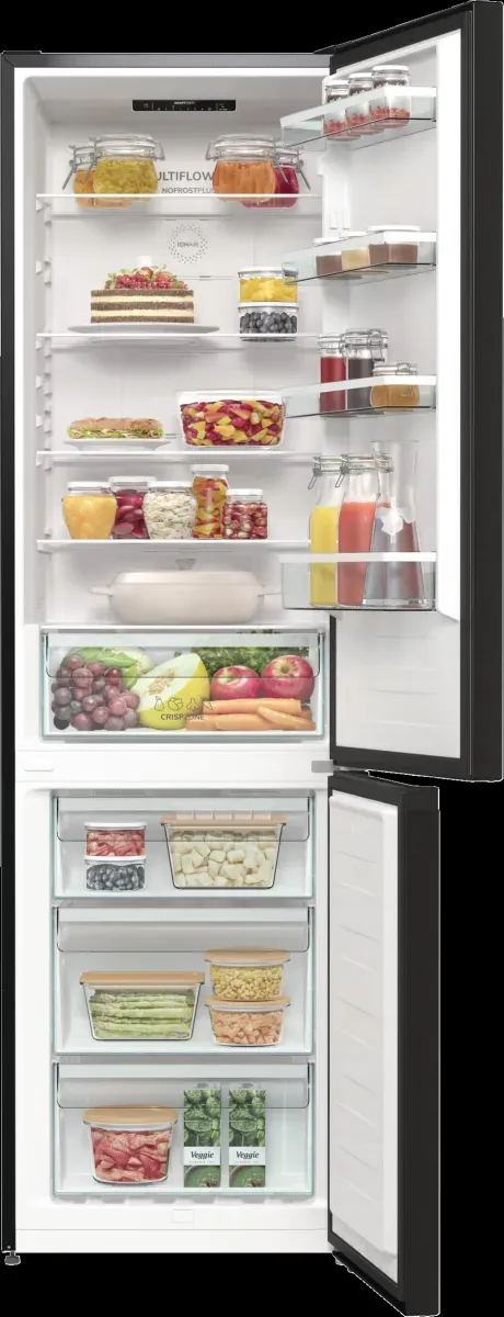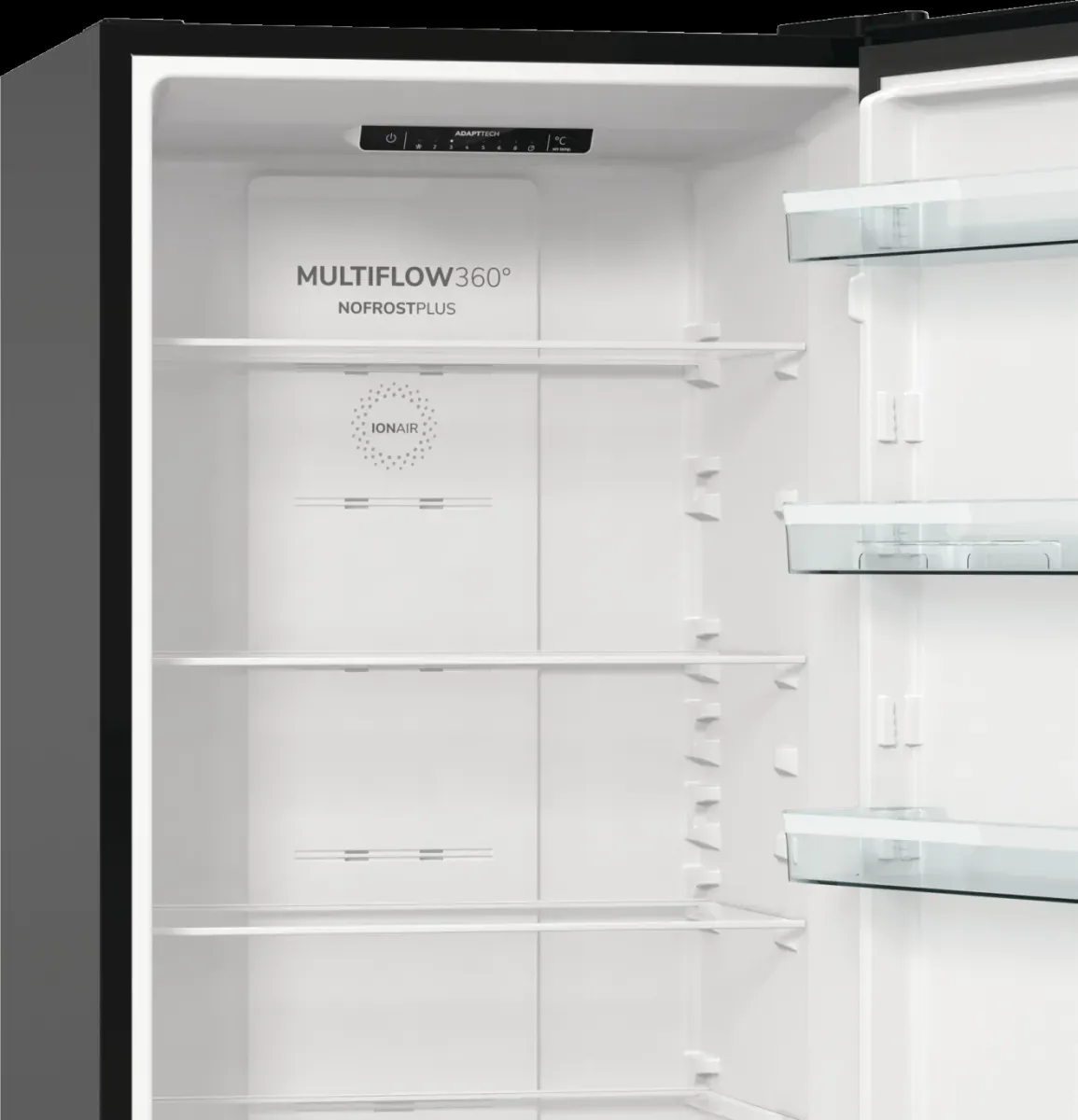 Pokročilá technologie v chladničkách simuluje přirozený proces ionizace, aby jídlo zůstalo déle čerstvé. Negativně nabité ionty generované zařízením neustále obnovují vzduch tak, aby napodobovaly přírodní mikroklima, čímž vytvářejí ideální prostředí pro čerstvé potraviny. Ventilační systém MultiFlow 360° rovnoměrně distribuuje ionizovaný vzduch 14 ventilačními otvory, aby se na každé polici udržela konstantní teplota.