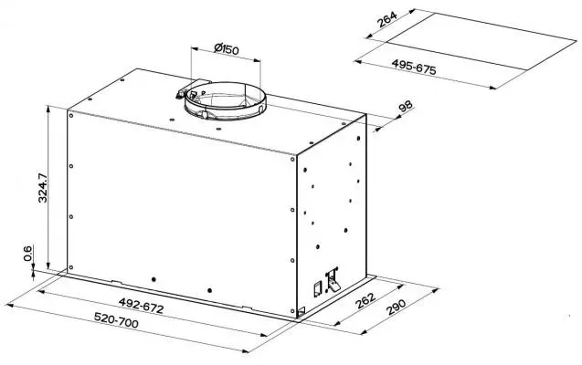 Lze ji také propojit s externím motorem na fasádu MISTRAL. V těchto případech jsou technické parametry digestoře shodné s parametry vybrané externí ventilační jednotky.