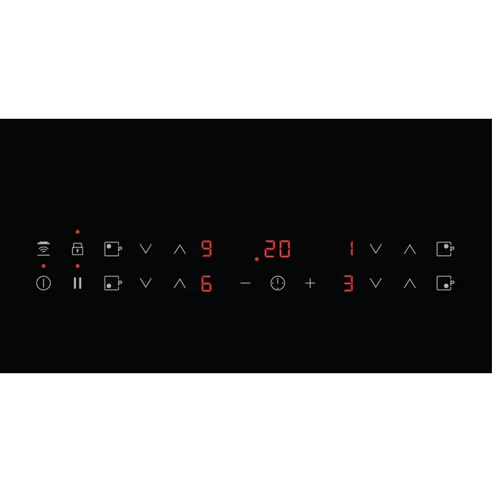 Kontrolní funkce 3 krokové využití zbytkového tepla, akustický signál, automatické zahřátí, funkce POWER (Booster) = rychlé ohřátí, minutka, pauza, vypnutí zvuku, ukazatel času, dětský zámek, propojen s odsavačem Hob2Hood, zajištění/odjištění ovládacího panelu