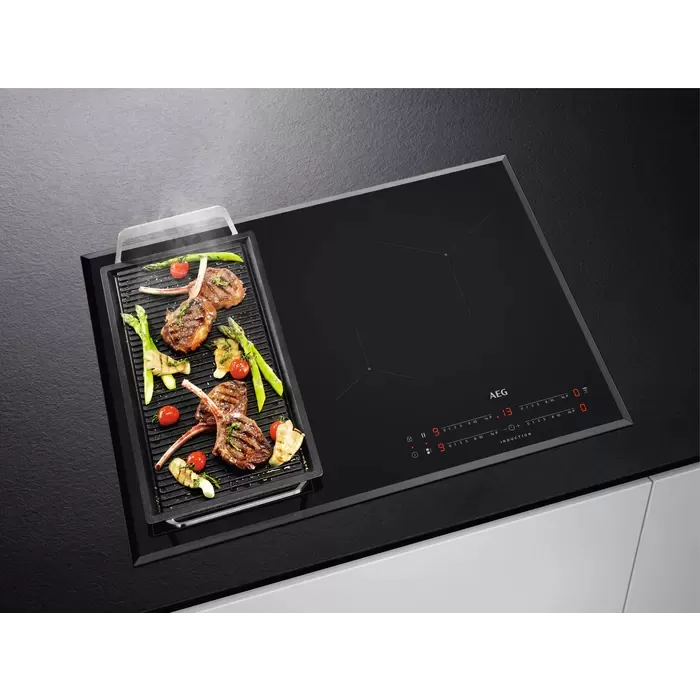 Funkce Bridge spojí dvě varné zóny dohromady, aby se bez problému vešla jakkoliv velká pánev. AEG IKE74441FB indukční varná deska se vyrábí černá.