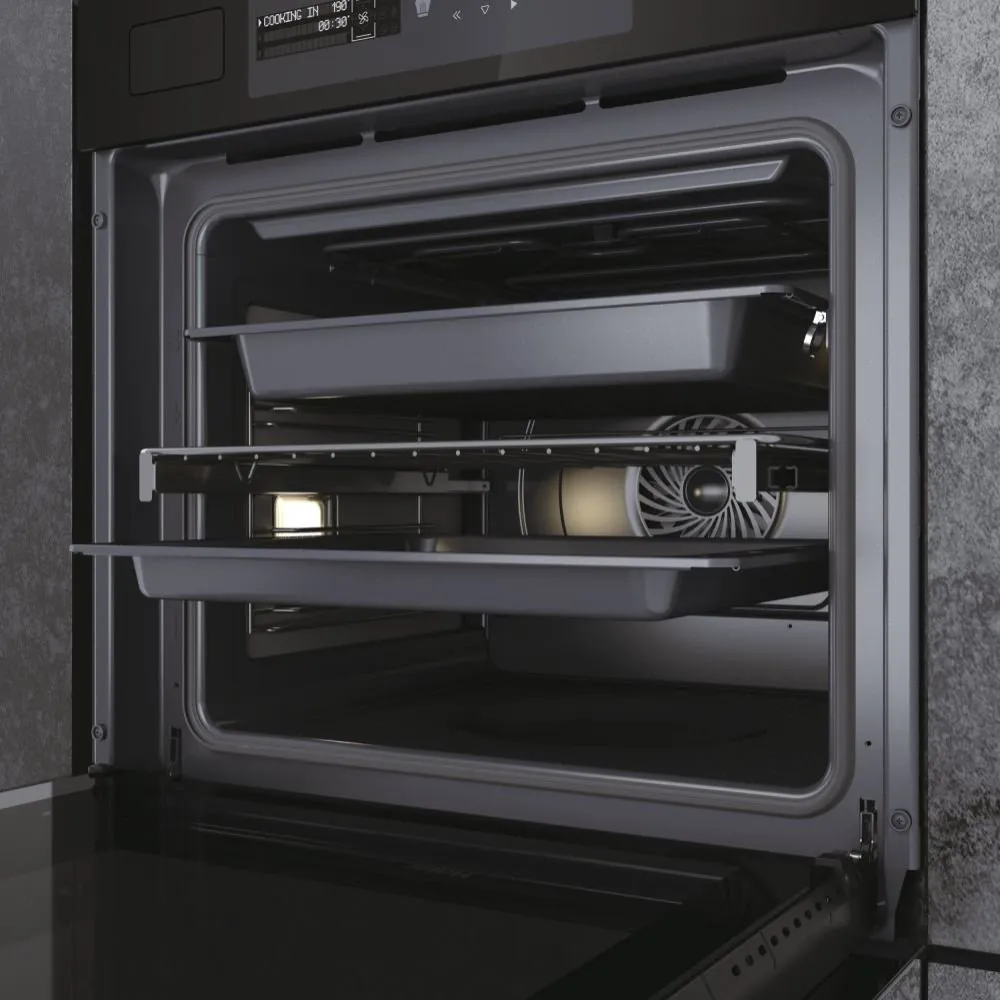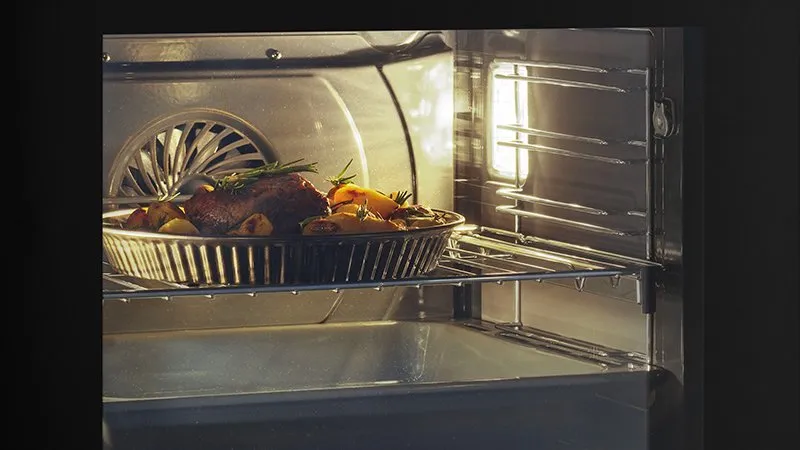 Dokonalé rozložení tepla, vlhkosti a vzduchu ve vaší troubě zajistí dokonalou rovnoměrnost při vaření pro dosažení vynikajících výsledků. Díky panelu šéfkuchaře speciálního tvaru a proměnlivými otáčkami ventilátoru dosáhneme optimální distribuci vzduchu a ohřevu uvnitř trouby. Radiální umístění chladicího systému ventilátoru pomůže udržet konstantní teplotu uvnitř, aniž by došlo ke ztrátě tepla nebo přehřátí rukojeti, okolního nábytku nebo elektroniky mimo troubu.