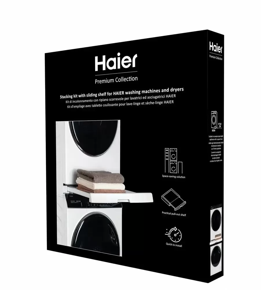 Spojovací díl Haier HASTKU108 je určen pro spojení pračky a sušičky. Pohodlná výška pro usnadnění manipulace s prádlem bez zbytečného ohýbání. Praktický pro skládání prádla při vyprazdňování sušičky. Zásuvka unese zátěž až 12 kg a má bezpečnostní zarážku proti vypadnutí. Užitečná plocha zásuvky: 36 × 50 cm.