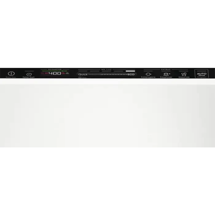 Indikace funkcí: budík, zpožděný start 1-24h, fáze sušení, extra hygienický, GlassCare, Machine Care, vybraný program, indikátor pro leštidlo, sůl, Time beam White, XtraPower - extra silný