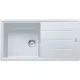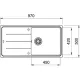 Fragranitový dřez Basis. Cena zahrnuje: Sítkový ventil 3 1/2“ s přepadem. Sifon pro úsporu místa 6/4“ s odbočkou na myčku nádobí. 2 Místa pro vyvrtání otvoru.Pozor! Baterie je umístěna ve vyspádované odkapávací ploše a je mírně nakloněna.