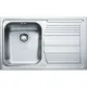 Nerezový dřez Logica. Cena zahrnuje: Sítkový ventil 3 1/2“ s přepadem. Sifon pro úsporu místa 6/4“ s odbočkou na myčku nádobí. Otvor pro baterii ∅ 35 mm. Tkaná struktúra.