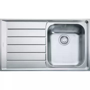 Nerezový dřez Neptun. Cena zahrnuje: Sítkový ventil 3 1/2" s přepadem. Sifon pro úsporu místa 6/4" s odbočkou na myčku nádobí. Otvor pro baterii ∅ 35 mm.