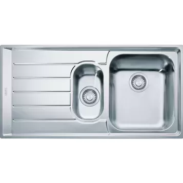 Nerezový dřez Neptun. Cena zahrnuje: Sítkový ventil 3 1/2" s přepadem. Sítkový ventil 3 1/2". Sifon pro úsporu místa 6/4" s odbočkou na myčku nádobí. Otvor pro baterii ∅ 35 mm.