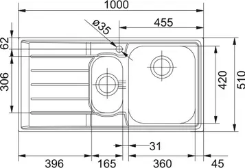 Vnitřní rozměr 2. dřezu: délka 165 mm