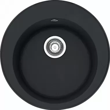 Fragranitový dřez Rondo. Cena zahrnuje: Sítkový ventil 3 1/2“ s přepadem. Sifon pro úsporu místa 6/4“ s odbočkou na myčku nádobí. 2 Místa pro vyvrtání otvoru. Možnost umístit dávkovač saponátu.