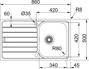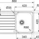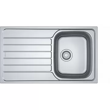 Nerezový dřez Spark. Cena zahrnuje: Sítkový ventil 3 1/2“ s přepadem. Sifon pro úsporu místa 6/4“ s odbočkou na myčku nádobí.