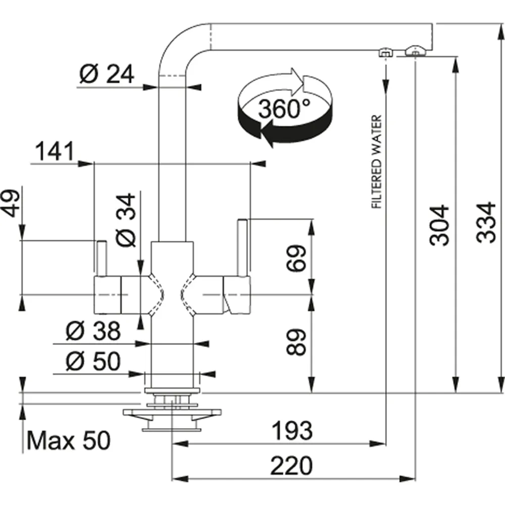 Průtok filtrované vody: 2 l/min. (3 bar)