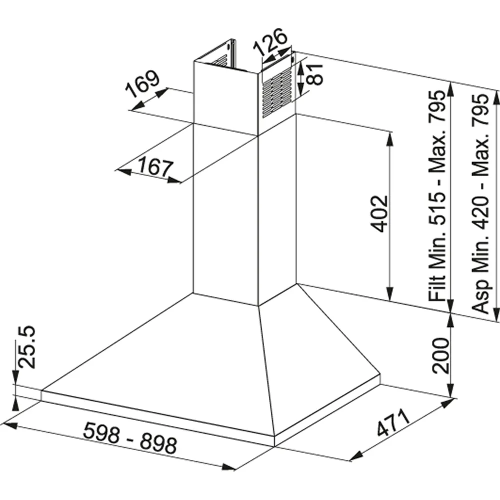 Komínový odsavač par Joy. Provedení nerez. Energetická třída D. Tlačítkové ovládání. 3 Stupně výkonu.