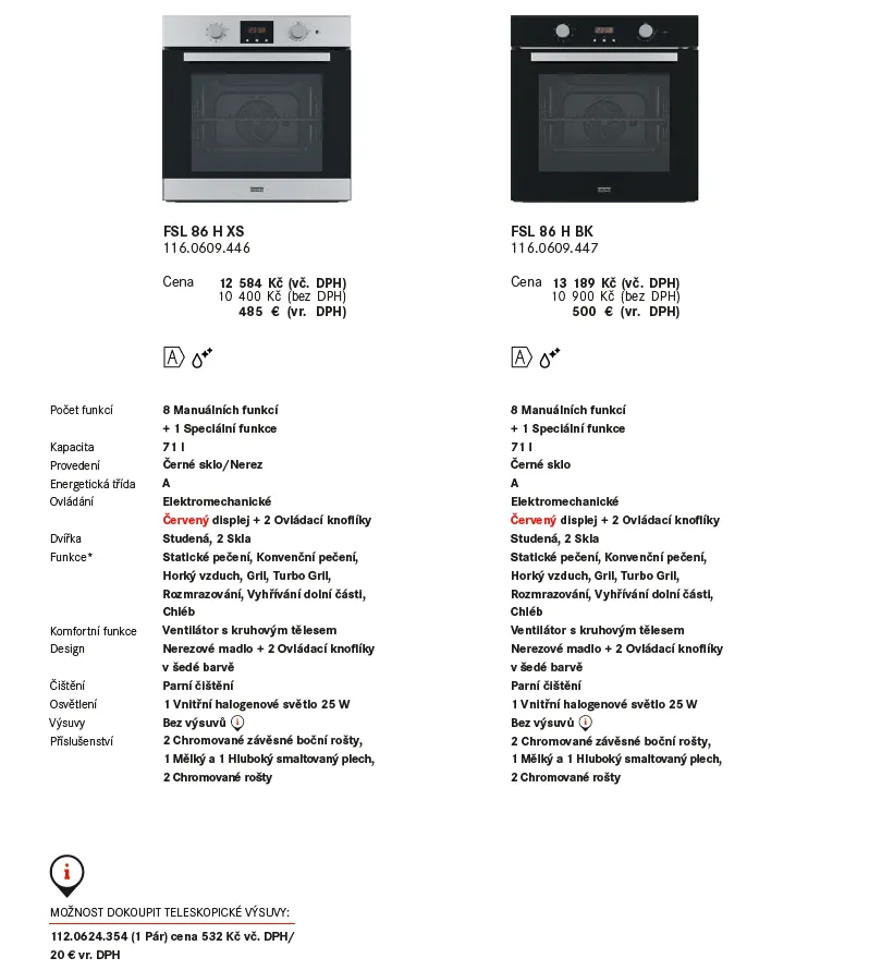 Teleskopické výsuvy Volitelné