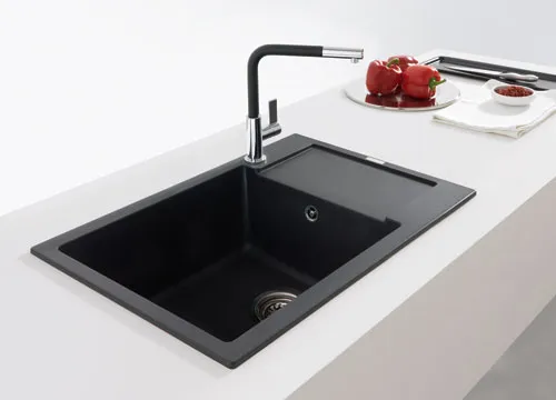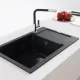 Fragranitový dřez Maris. Cena zahrnuje: Sítkový ventil 3 1/2“ s přepadem. Sifon pro úsporu místa 6/4“ s odbočkou na myčku nádobí. 4 Místa pro vyvrtání otvoru. Možnost umístit dávkovač saponátu. Pozor! Umístění dávkovače do skříňky od 800 mm.