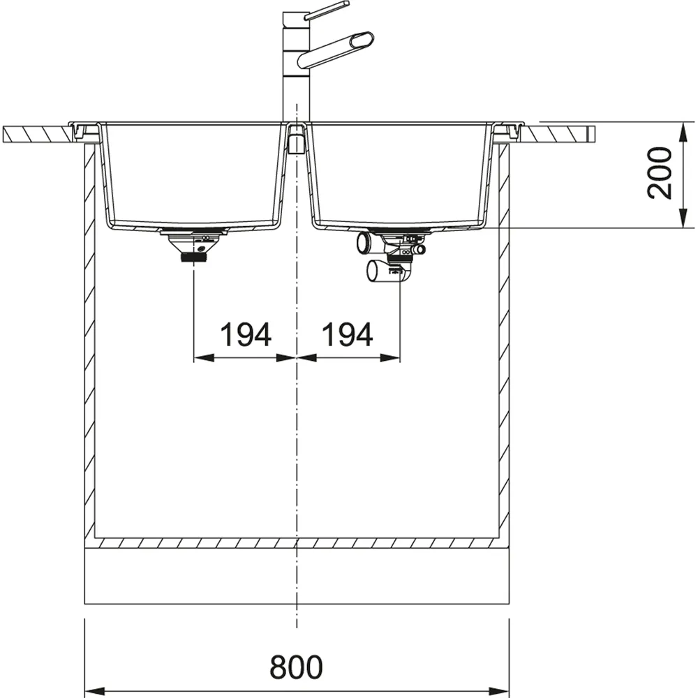 Tectonitový dřez Sirius 2.0. Cena zahrnuje: Sítkový ventil 3 1/2“ s přepadem. Sítkový ventil 3 1/2“. Sifon pro úsporu místa 6/4“ s odbočkou na myčku nádobí. Otvor pro baterii ∅ 35 mm.
