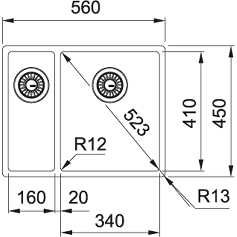 Vnitřní rozměr 2. dřezu: délka 160 mm