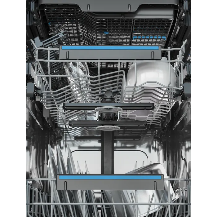 Díky dvěma rotačním sprchovacím ramenům je oplach zajištěn pro veškeré nádobí v myčce. Ostřikovače zajistí, že se voda dostane do každého rohu, aby vaše nádobí bylo po umytí nablýskané. V horním i dolním koši.