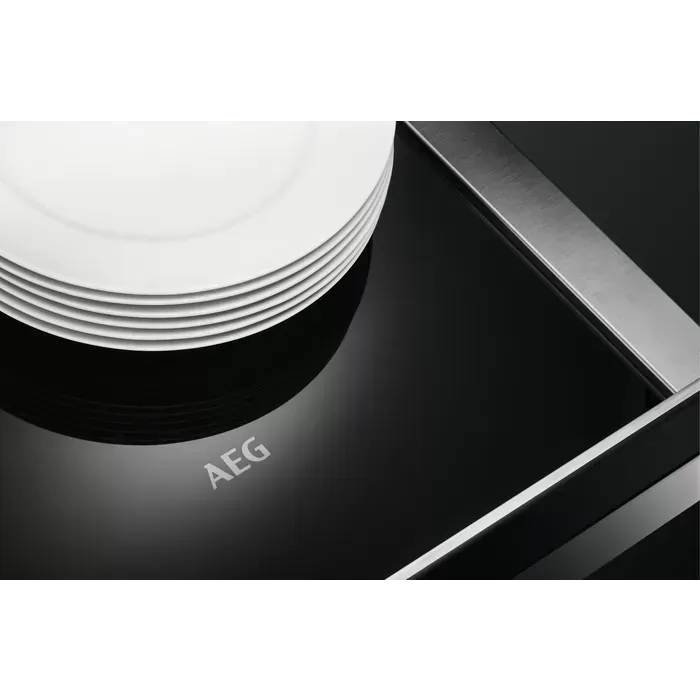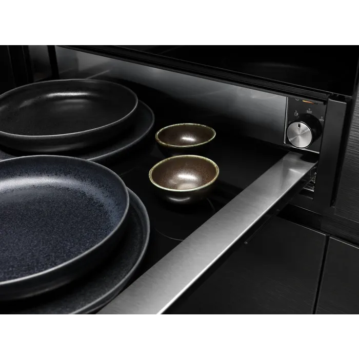 Tato ohřevná zásuvka s elegantním designem perfektně ladí s vestavnou troubou a hladce se začlení do vaší kuchyně.