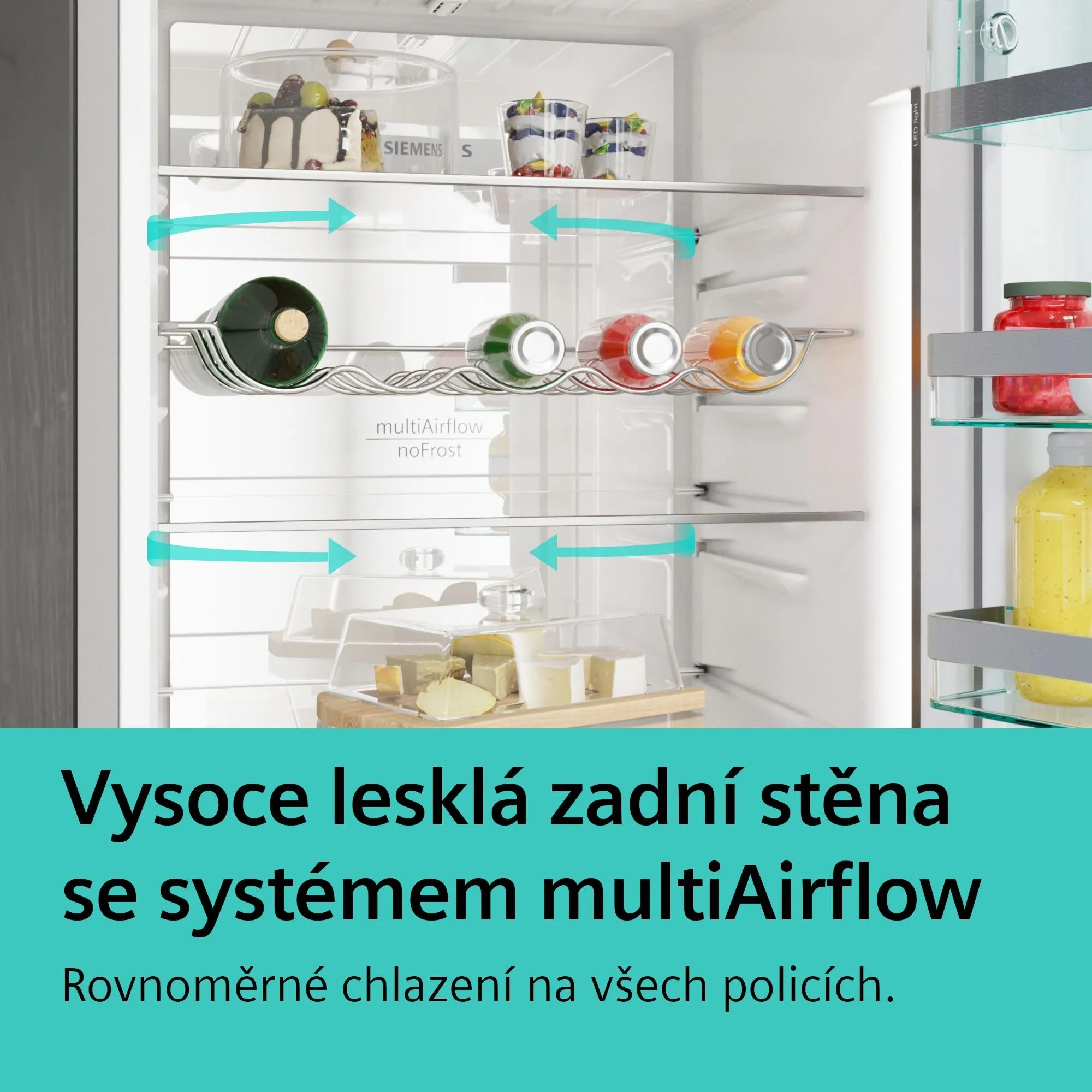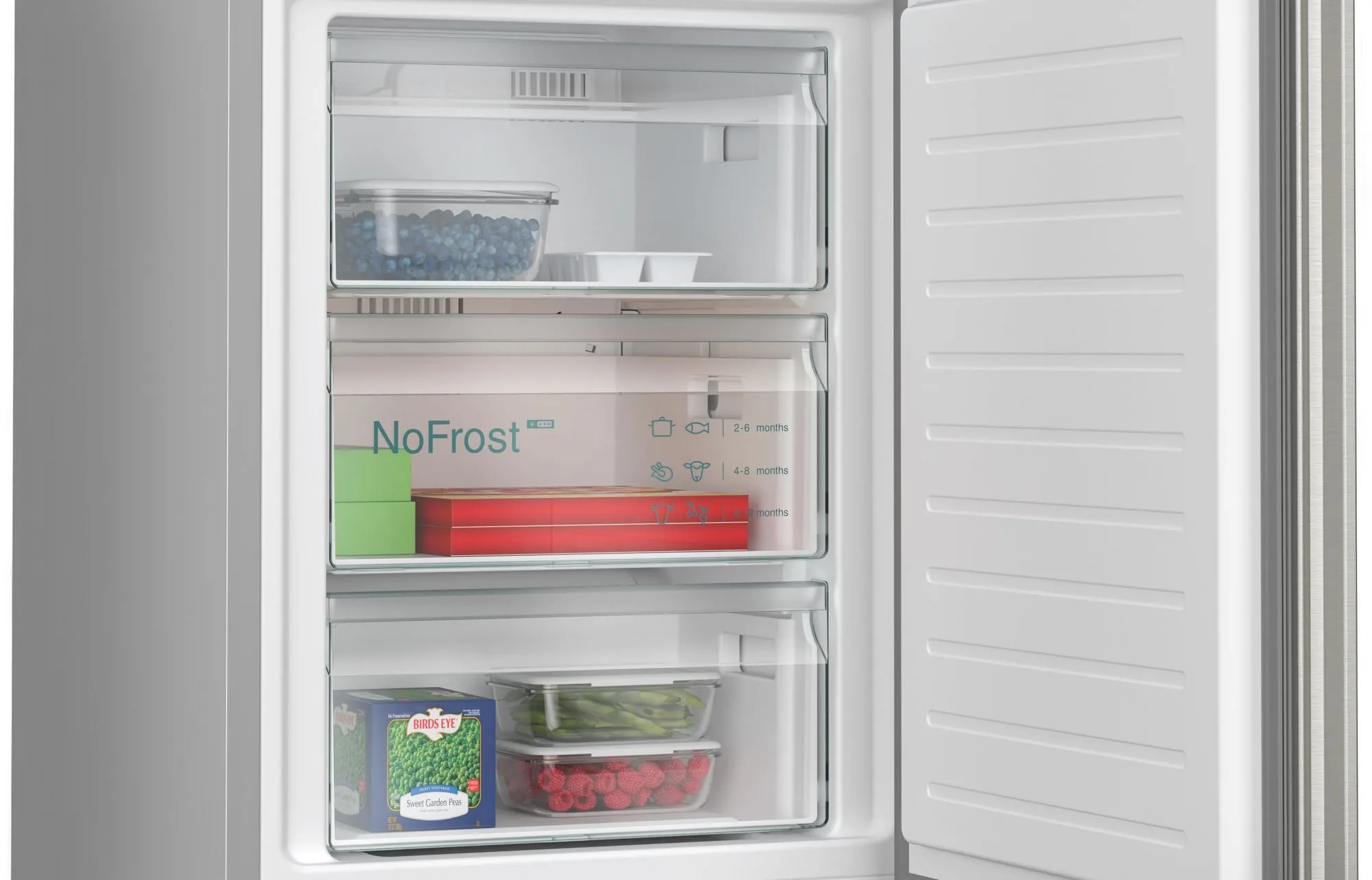 NoFrost kombinace chladnička/mraznička s hyperFresh zásuvkou, která udrží ovoce a zeleninu déle čerstvé, navíc s technologií noFrost pro eliminaci odmrazování.