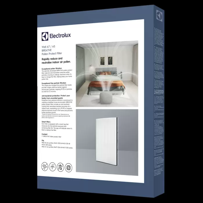 Speciálně vyvinutý pylový filtr BREATHE zachycuje a neutralizuje pylové částice přenášené vzduchem, čímž zajišťuje, že nedojde k alergickým reakcím při výměně filtru, a pomáhá tak udržet vaši domácnost bez pylu.