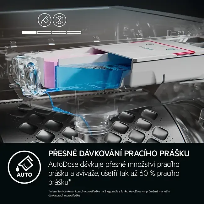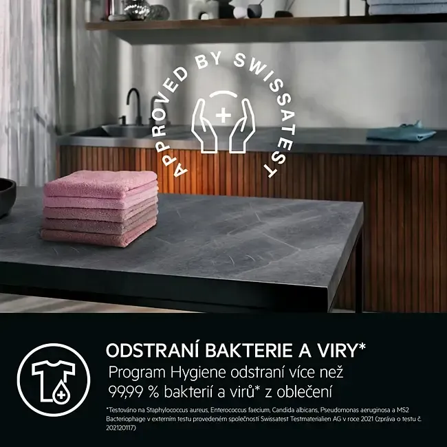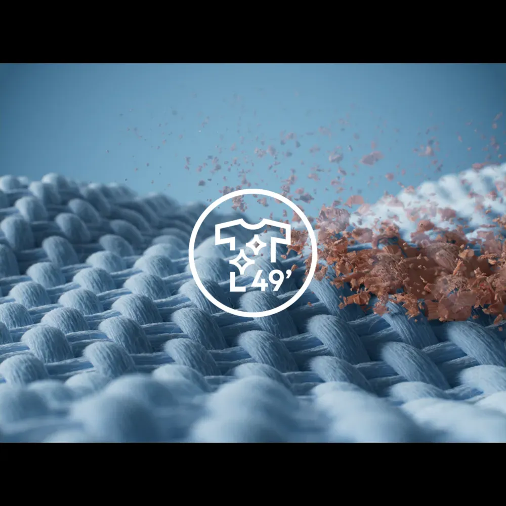 *Externí test programu AbsoluteWash 49 min na 30 °C s náplní 5 kg prádla prokázal 100% odstranění 59 nejčastějších skvrn na oblečení.