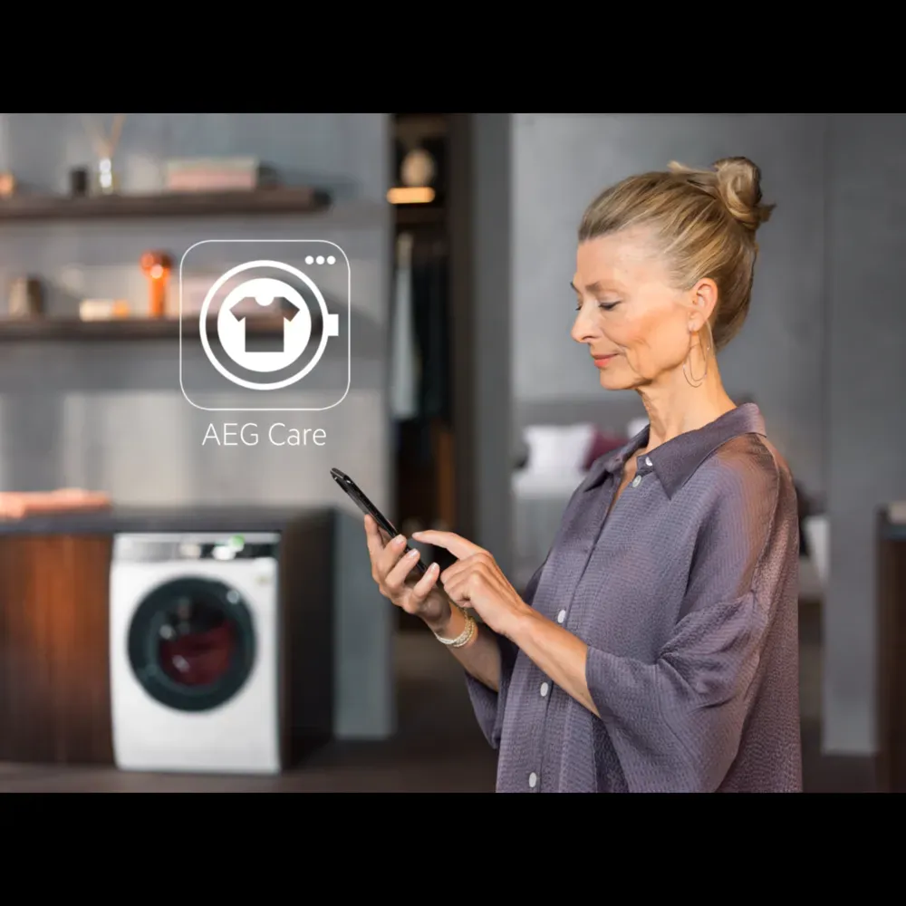 Pomocí aplikace My AEG Care můžete přizpůsobit nastavení a získat chytré tipy a návrhy. Přizpůsobte si prací cykly a posílejte spotřebiči pokyny, aby se přizpůsobil vašim potřebám a zvyklostem. Chytrá a snadná péče prostřednictvím vašeho chytrého telefonu.