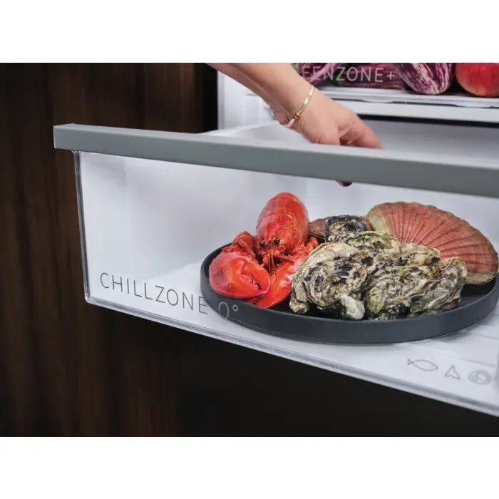 Chraňte své citlivé suroviny pomocí ChillZone 0°. Při teplotě 0 °C a nižší udržuje utěsněná přihrádka nižší teplotu, která je ideální pro mražené potraviny, maso a ryby. Pro lepší ochranu potravin.