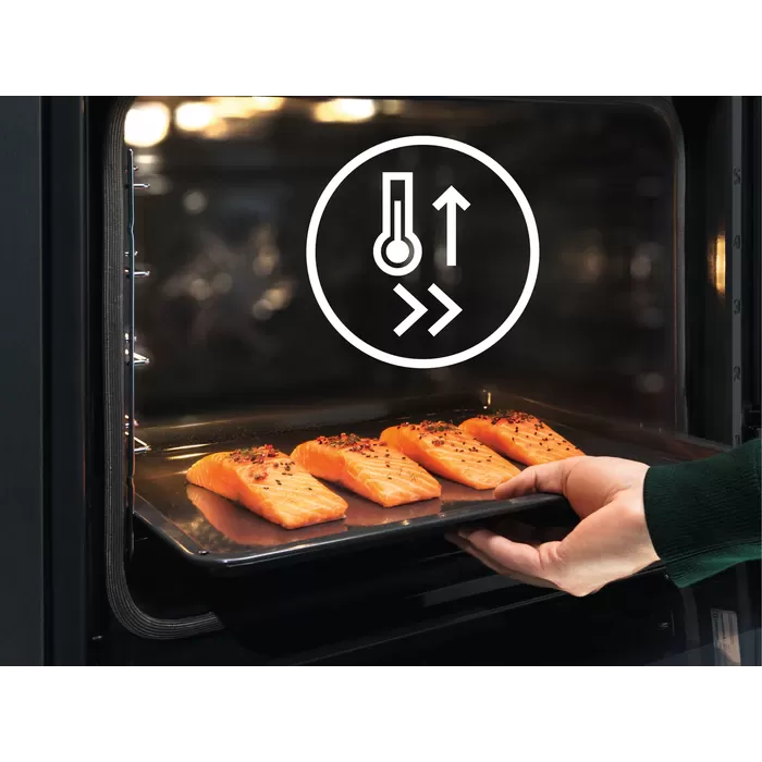 Naše funkce rychlého zahřátí zajišťuje, že je trouba rozpálená přesně ve chvíli, kdy potřebujete. Ve srovnání s jinými troubami se totiž zahřeje na požadovaný stupeň v kratším čase. Vy tak máte dříve hotovo a můžete odpočívat.