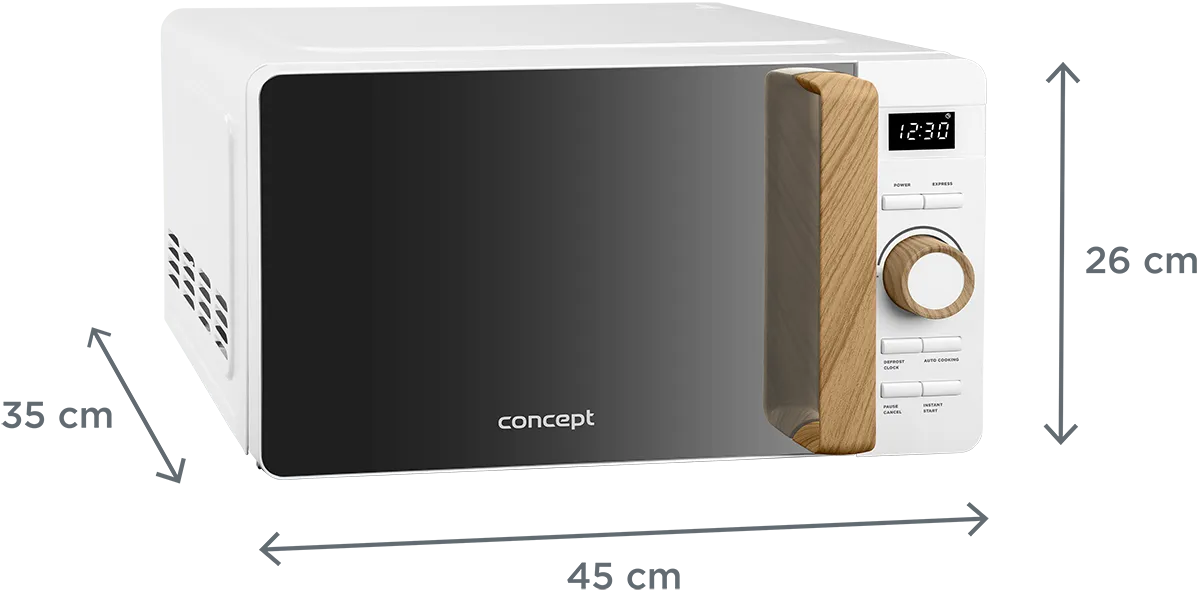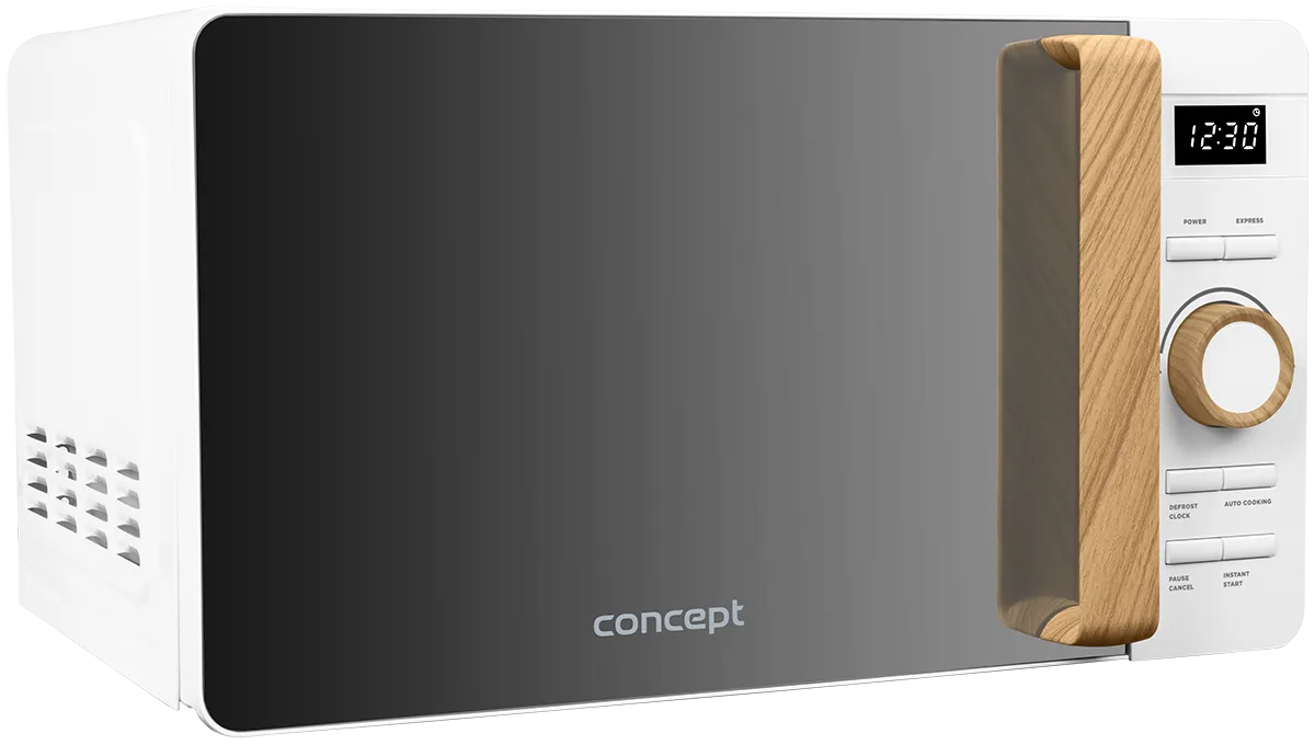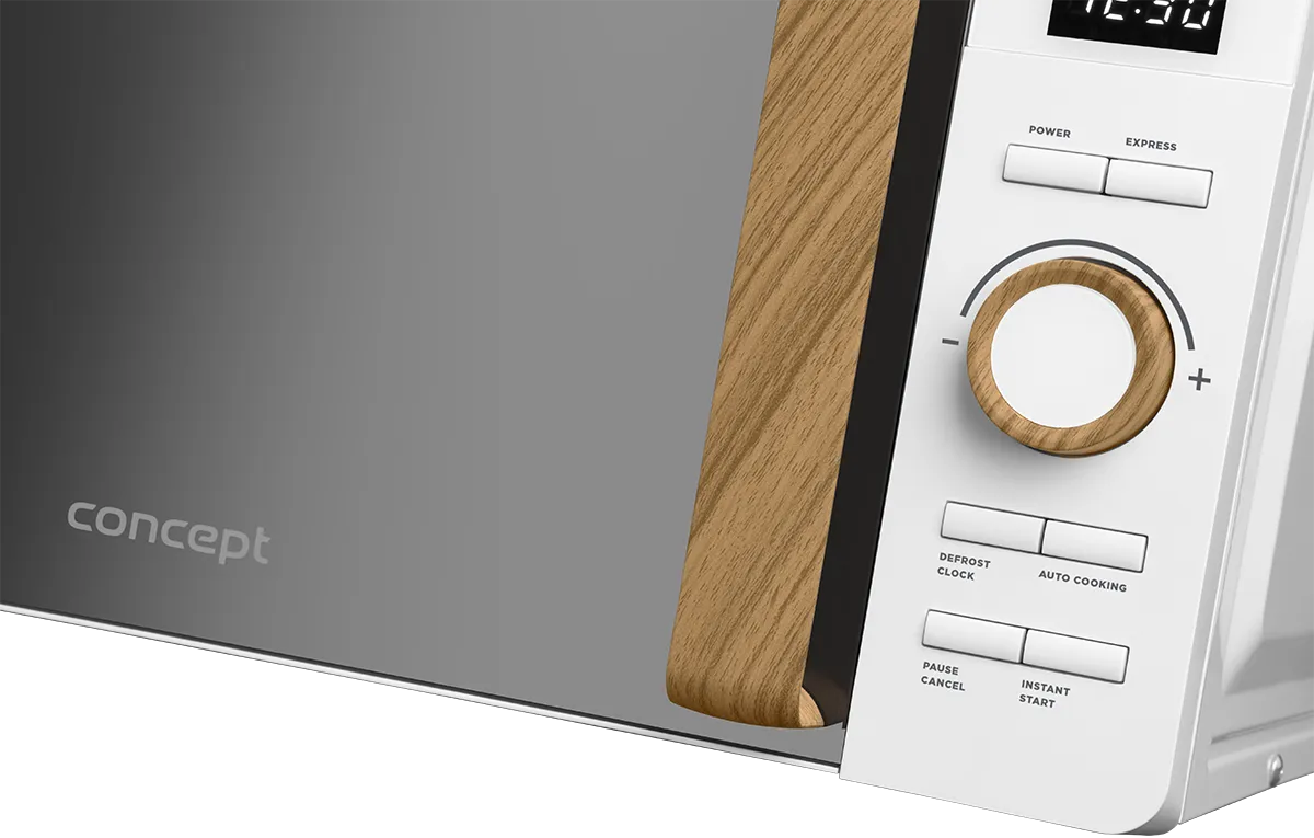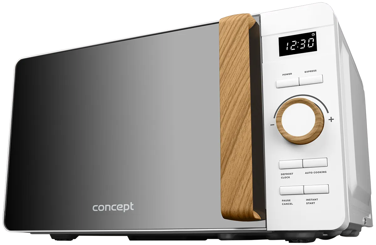 Mikrovlnná trouba Concept MT4420wh na první pohled osloví svým netradičním zpracováním v podobě zrcadlového skla na dvířkách a atraktivních dřevěných prvků. Perfektně zapadne do moderní i tradiční kuchyně a společně s ostatními spotřebiči Concept z řady Nordic vytvoří dokonale sladěný set.